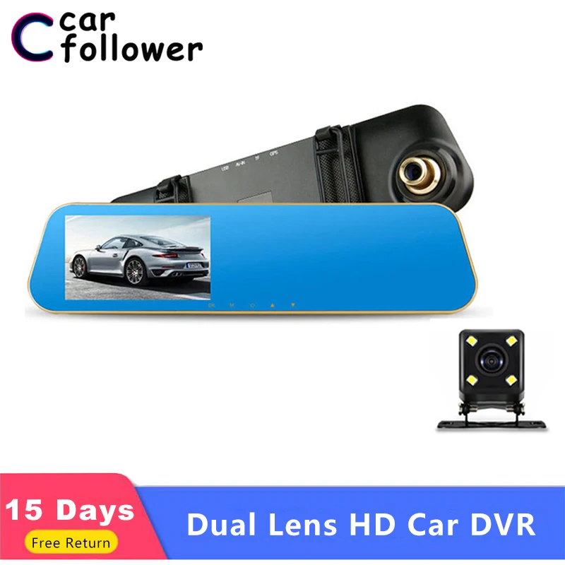 Car Follower 4.3" Full HD 1080P Dash Camera Auto Driving Recorder Rearview Mirror Dash Cam Dual Len