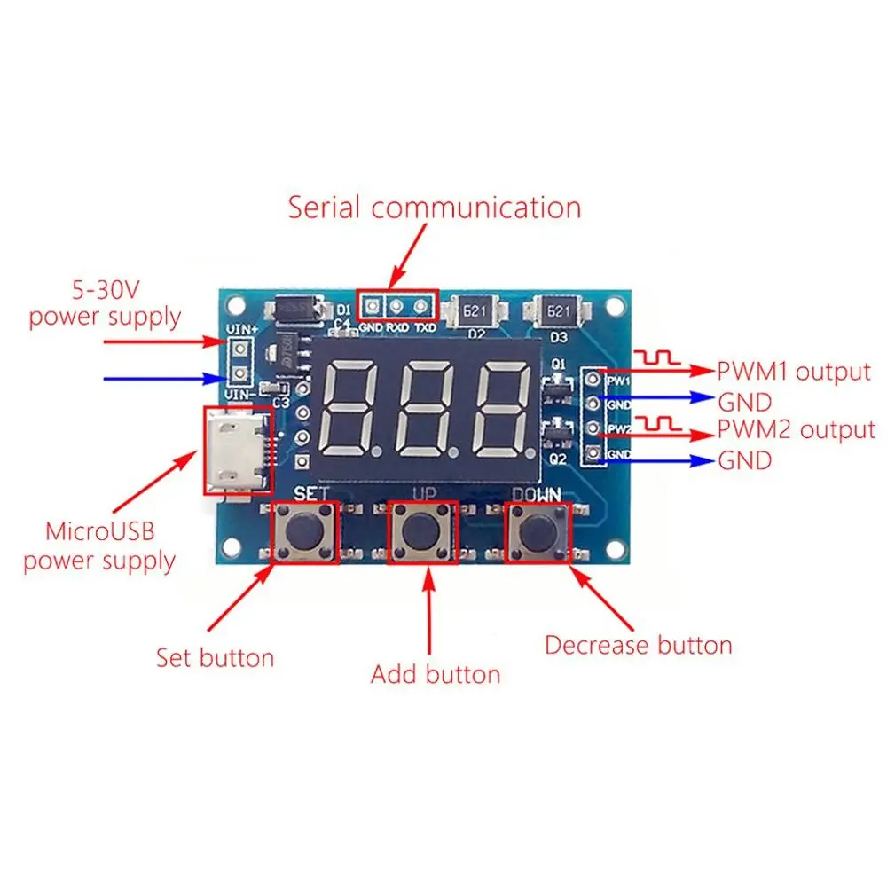 Power Independent PWM Signal Generator 2 Channel Dual Way Digital LED Duty Cycle Pulse Frequency Bo
