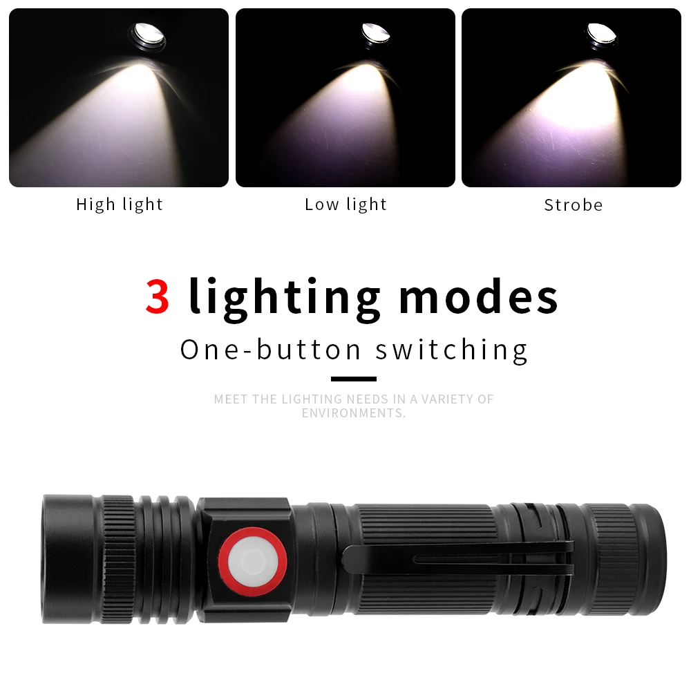 BORUiT YF2005 XML T6 LED Flashlight 3-Mode USB Charger Torch Zoomable Lantern Power Bank Camping Fl