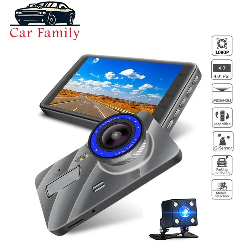 Dashcam Full HD 1920x1080 Night Vision Parking Camera 4.0 Inch Dual Lens G-sensor 170 Wide Angle Ca