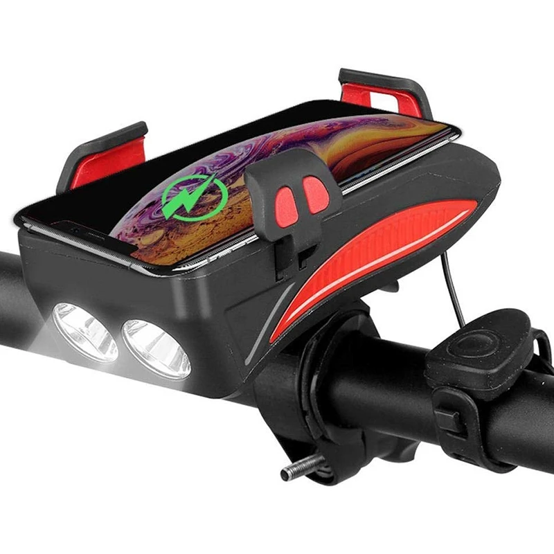 4 in 1 Bike Front Light Waterproof Cycling Light Bicycle Phone Holder with 4000MA Mobile Power Bank