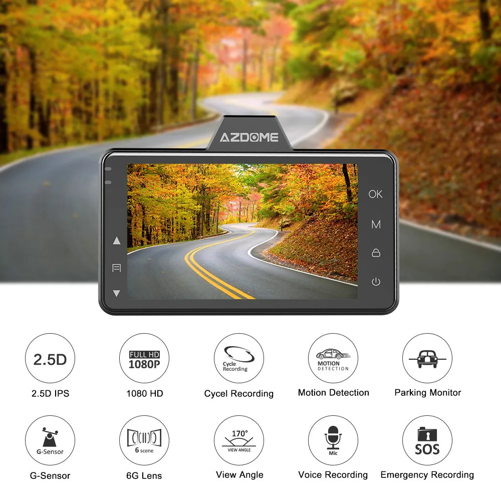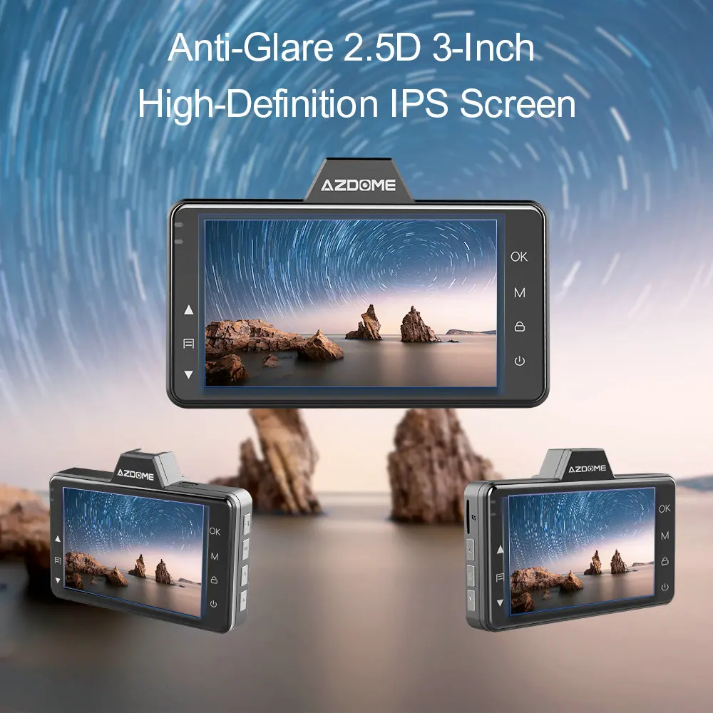 AZDOME M01 Dash cam 3-Inch 2.5D Screen 1080P HD Car DVR Recorder Driver Fatigue Alert 170 View Angl