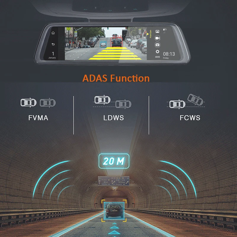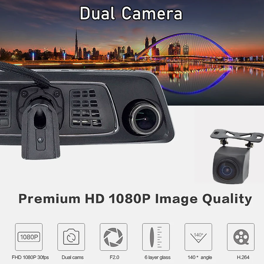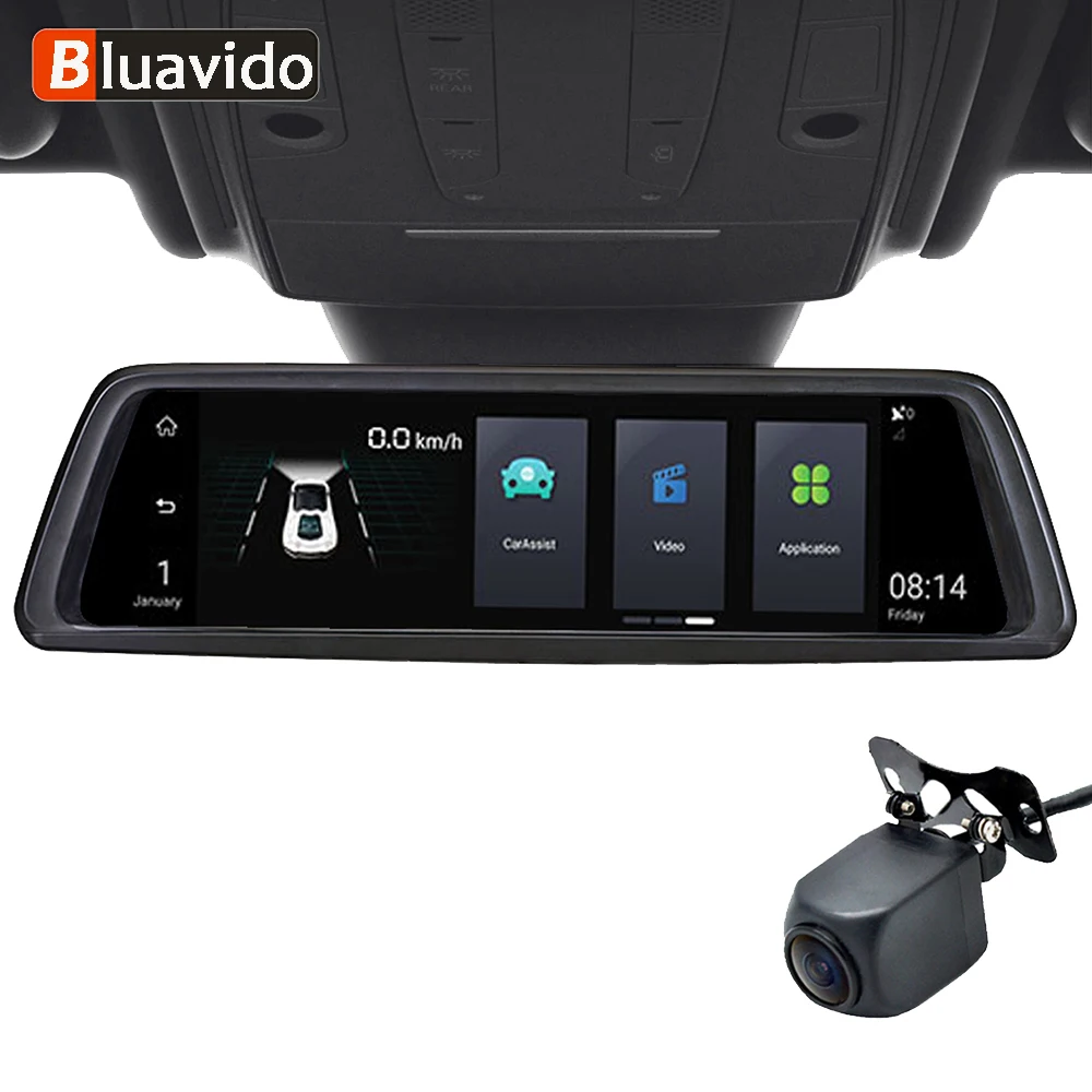 Bluavido 10" Mirror 4G Android Car Camera GPS FHD 1080P Dual Lens Vehicle rearview mirror Video Rec